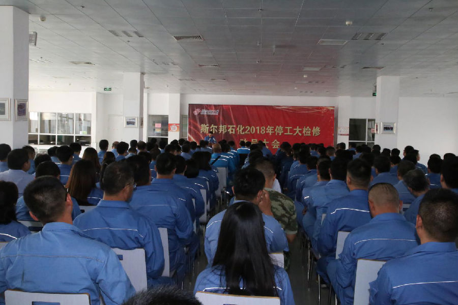 會(huì )議由斯爾邦石化安全總監郭榜立主持,斯爾邦石化設備副總經(jīng)理楊瑞平首先作檢修動(dòng)員報告,介紹了大檢修的總體情況、任務(wù)總量和整體目標,確立“安全、環(huán)保、優(yōu)質(zhì)、高效、科學(xué)、有序”的檢修方針,以及“零事故、零環(huán)保、零傷害”的安全環(huán)保目標,重點(diǎn)強調了檢修過(guò)程中的安全環(huán)保管理與監督、檢修質(zhì)量管理及檢修進(jìn)度管理等要求。
